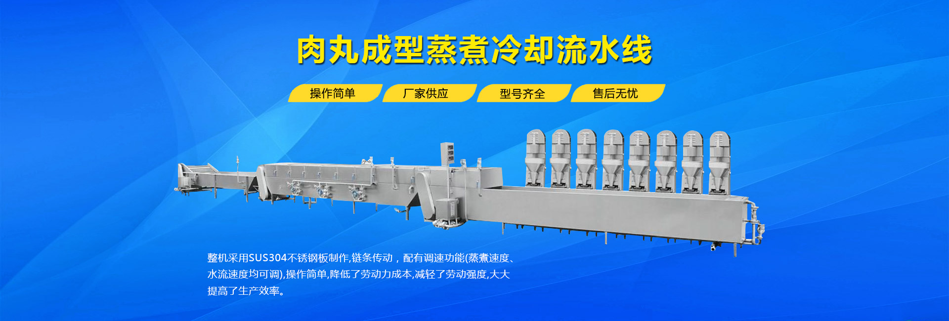公司主要生產(chǎn)不銹鋼制品食品機(jī)械:各種規(guī)格型號(hào)真空滾揉機(jī)、制冷滾揉機(jī)、提升機(jī)、電加熱夾層鍋、肉丸機(jī)、真空攪拌機(jī)、絞肉機(jī)、灌腸機(jī)、打卡機(jī)、線扎機(jī)、斬拌機(jī)、鹽水注射機(jī)、煙熏爐、油炸機(jī)、巴氏殺菌線、連續(xù)油炸線、肉丸成型水煮線、醬鹵生產(chǎn)線、肉丸破碎機(jī)、真空包裝機(jī)、洗袋風(fēng)干機(jī)、豬頭劈半機(jī)、不銹鋼火腿模具、肉斗車、案桌、煙熏車、屠宰類機(jī)械設(shè)備、清洗風(fēng)干設(shè)備、肉類解凍設(shè)備、滾筒拌料機(jī)等。產(chǎn)品廣泛適用于火腿腸、肉丸、肉串、鹵制品、海產(chǎn)品、禽類深加工、油炸、泡椒風(fēng)味、速凍水餃、魚豆腐、千葉豆腐、豆腐干、牛肉干、牛排雞排類、禽蛋、麻辣、休閑、水果蔬菜清洗、中央廚房、餐飲連鎖、寵物食品等食品生產(chǎn)。